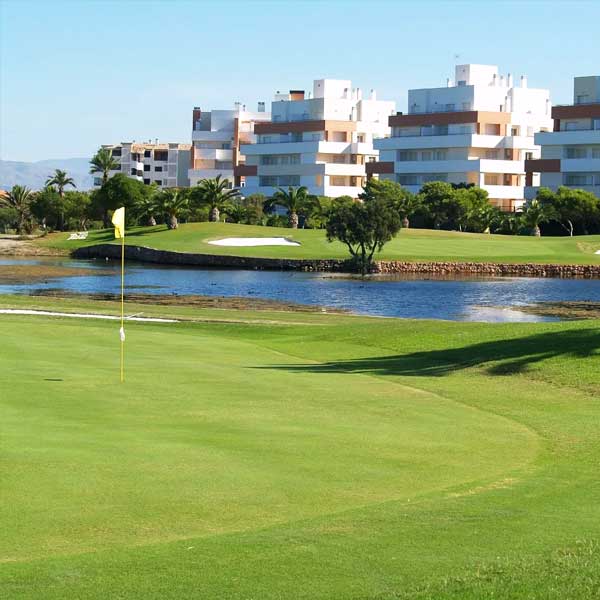 El campo dispone de 18 hoyos de par 72 con un recorrido de 6.030 m que discurren entre nueve lagos de gran atractivo y una esmerada vegetación típica del Mediterráneo en la que encontraremos pinos, palmeras, carrascos y olivos. Su recorrido es muy cómodo con amplias calles y greens defendidos por bunkers de cuidado diseño. Cuenta con una amplia oferta de servicios: casa club, restaurante, cafetería, salones sociales, tienda, piscinas, vestuarios, escuela de aprendizaje y campo de prácticas.