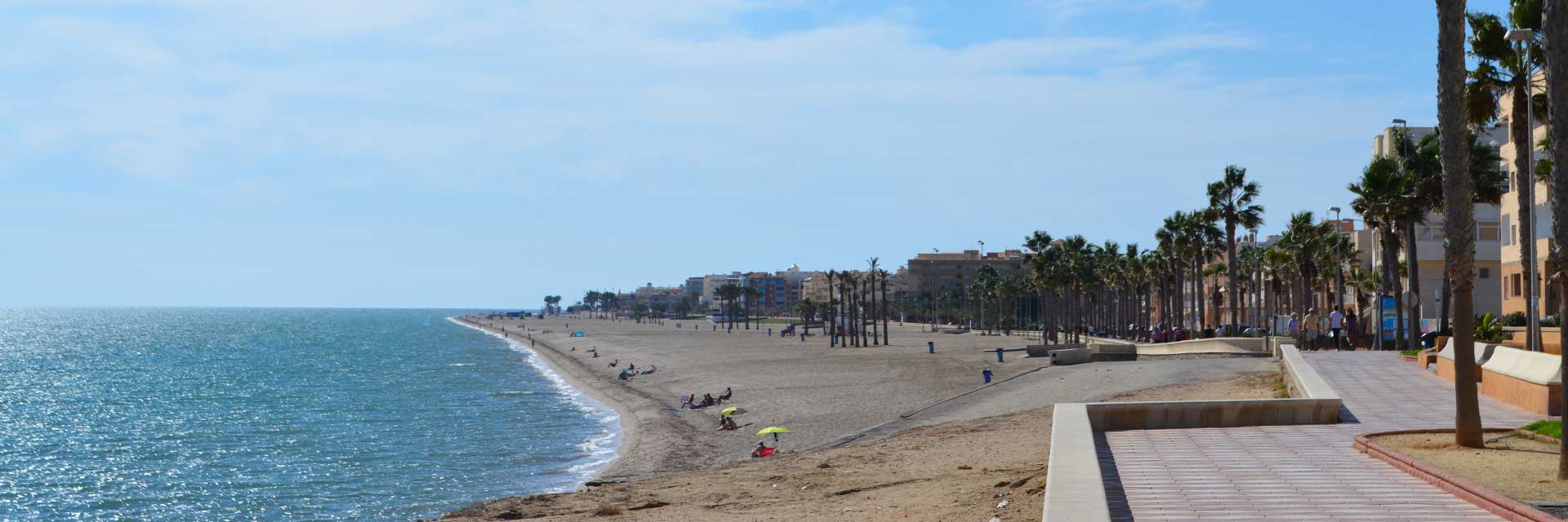 Esta playa está frente a los hoteles más modernos de Roquetas de Mar que se han construido frente al Campo de Golf. Sus 1780 m de longitud se extienden desde el final de la Playa de la Urba hasta el final de Roquetas de Mar. Su nivel de ocupación es bastante alto pero sin aglomeraciones. Cuenta con todos los servicios necesarios.